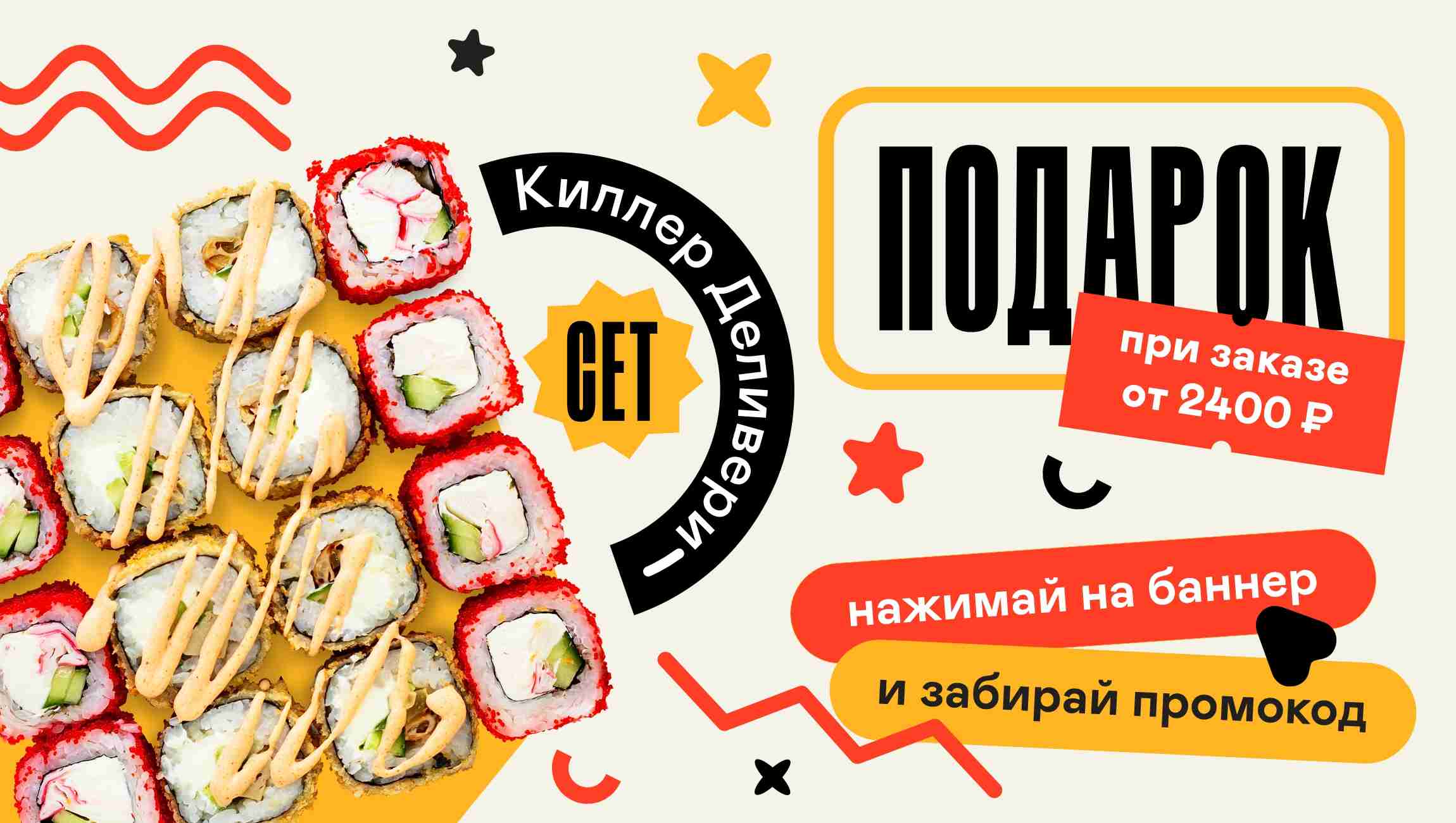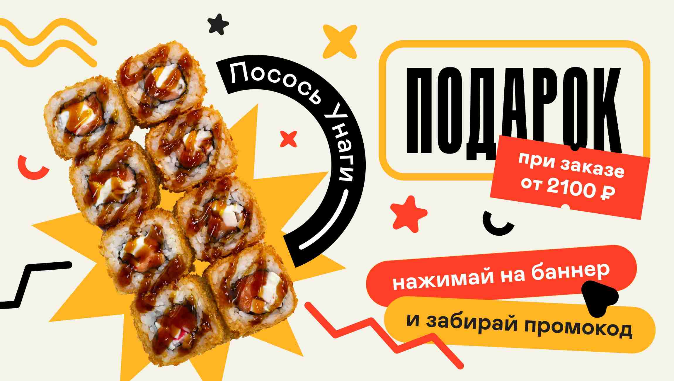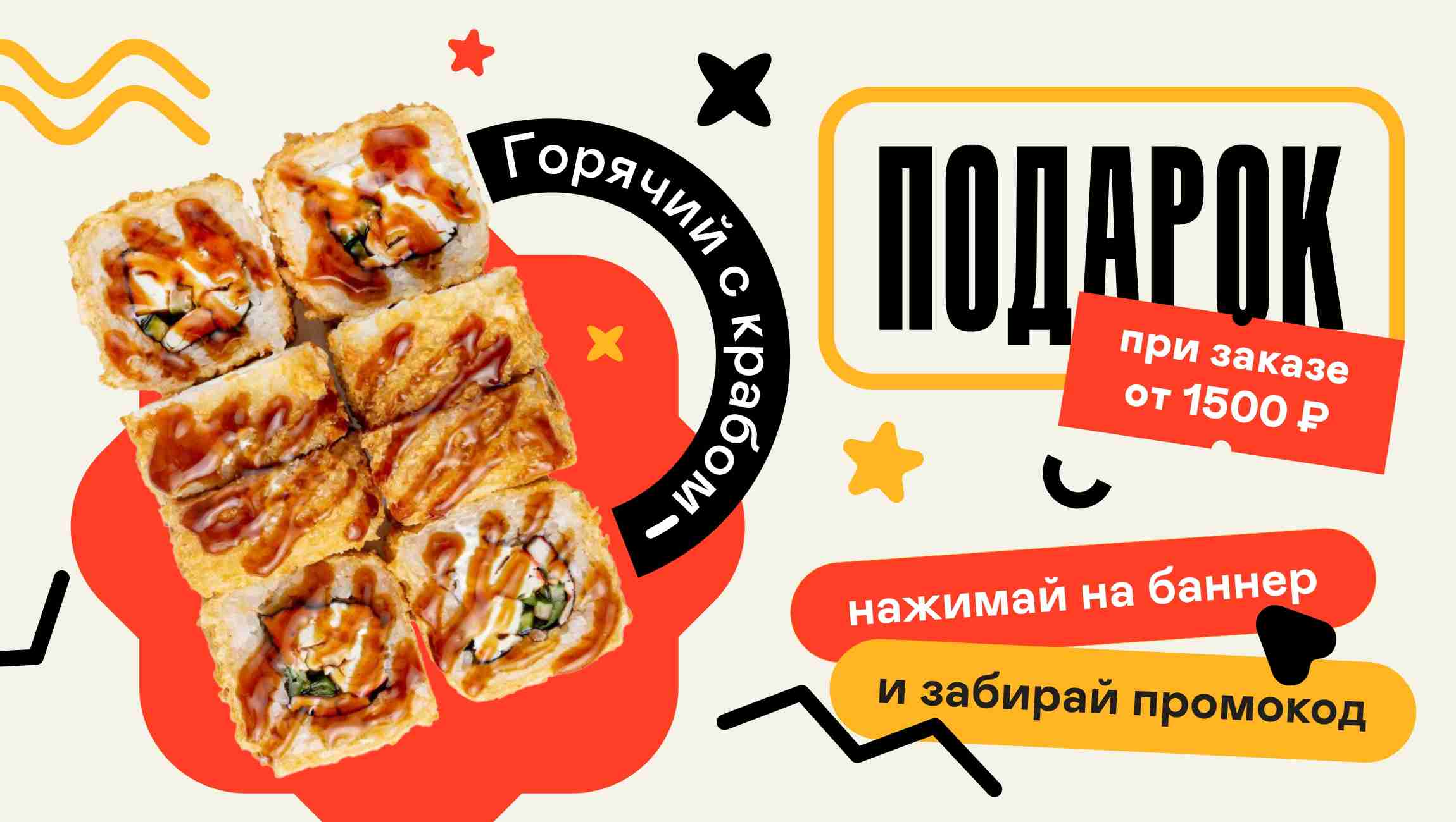 ВНИМАНИЕ! Соевый соус, имбирь и васаби в комплект не входят. Подарок идет только по промокоду! 1. Горячий ролл “Горячий Чикен Тар - тар” (Рис, Водоросли Нори, Огурец, Сыр творожный, Темпур ...