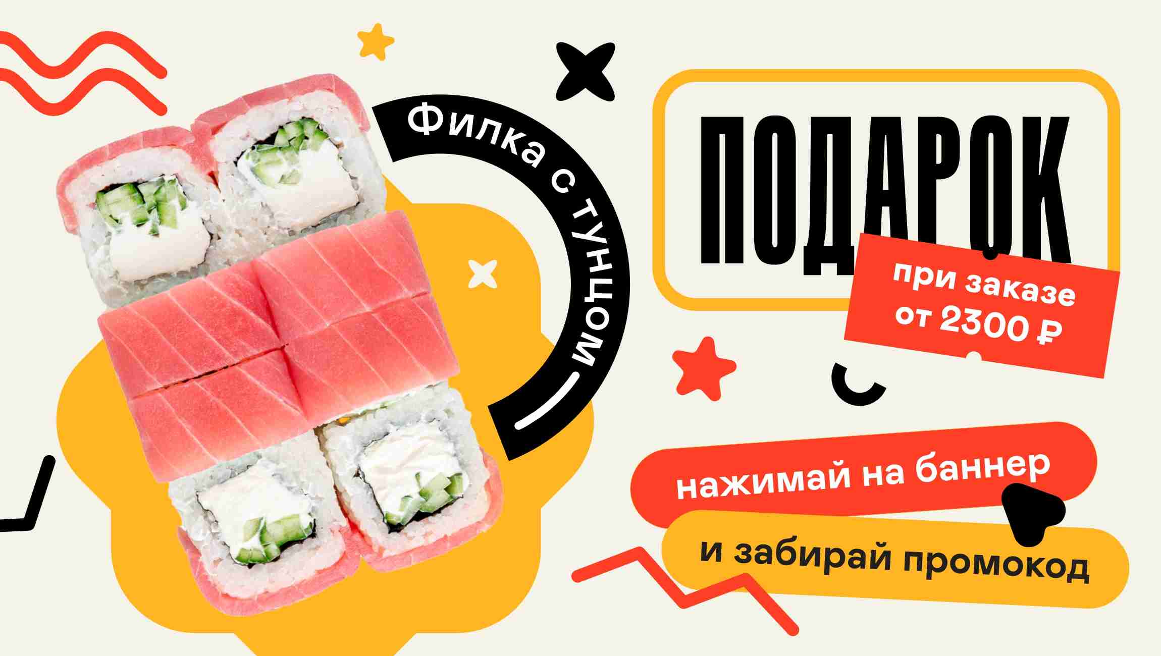 Важно! Сет "Туна" только по промокоду: "ТУНАДР5" Соевый, имбирь, васаби не входят в комплект Сет "Феникс": 1. Горячий ролл “Фиш” (Рис, Водоросли Нори, Сыр творожный, Фиш темпура, Темп ...